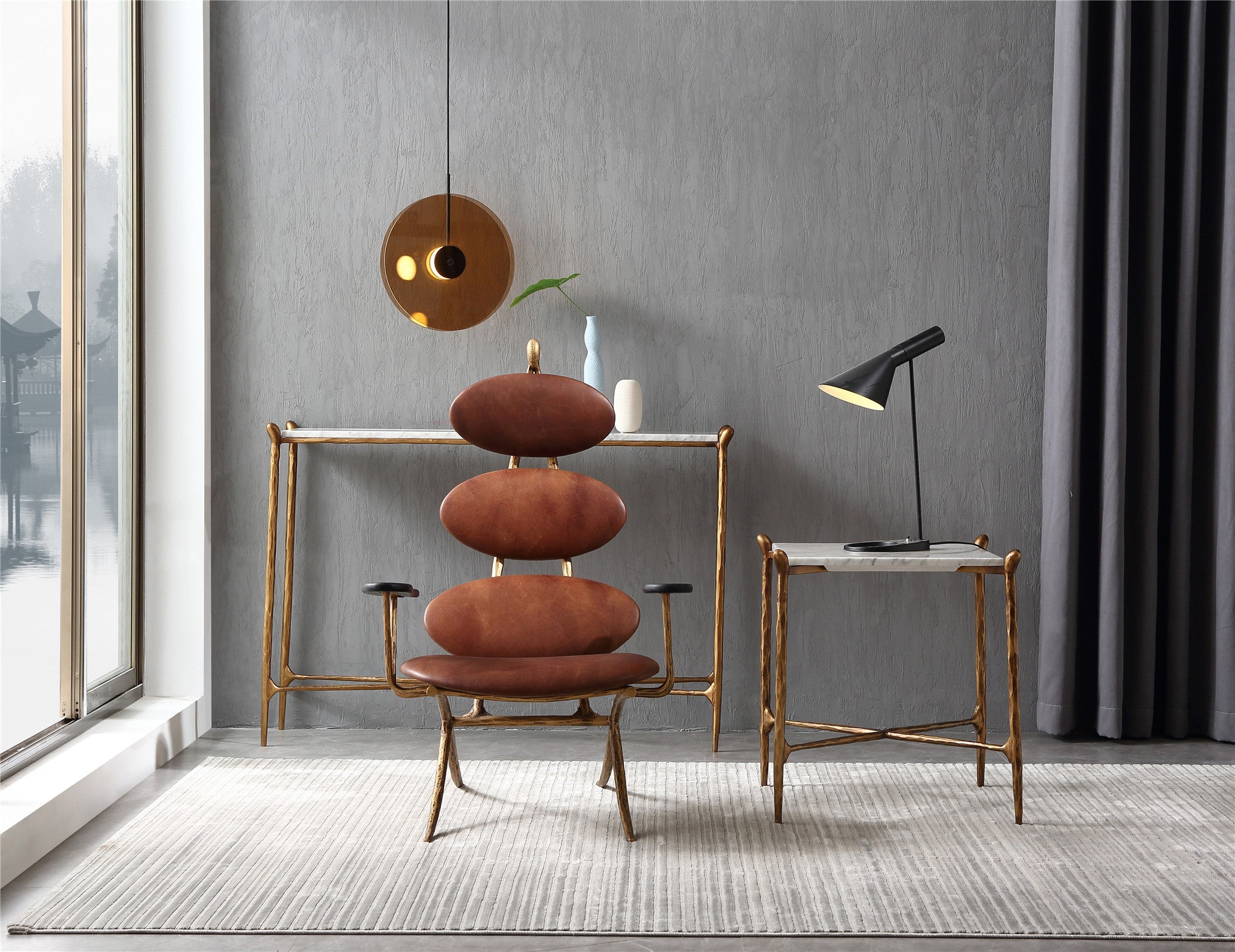 Thaddeus Enamel Wooden Plate Leather Armchair$1,599.00 USD$1,779.00 USD
