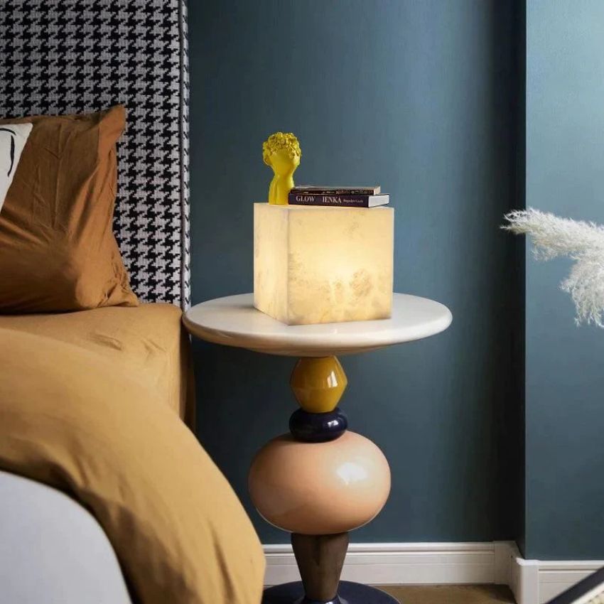 The Alabaster Cubic Table Lamp,Table Lamp is made of natural alabaster cubic with the natural look, with the warm white light color gives a soft and warm effect.