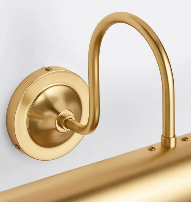 This Led picture light is made of brass with integrated Led panel. The soft lights source gives a focused swath of light.
