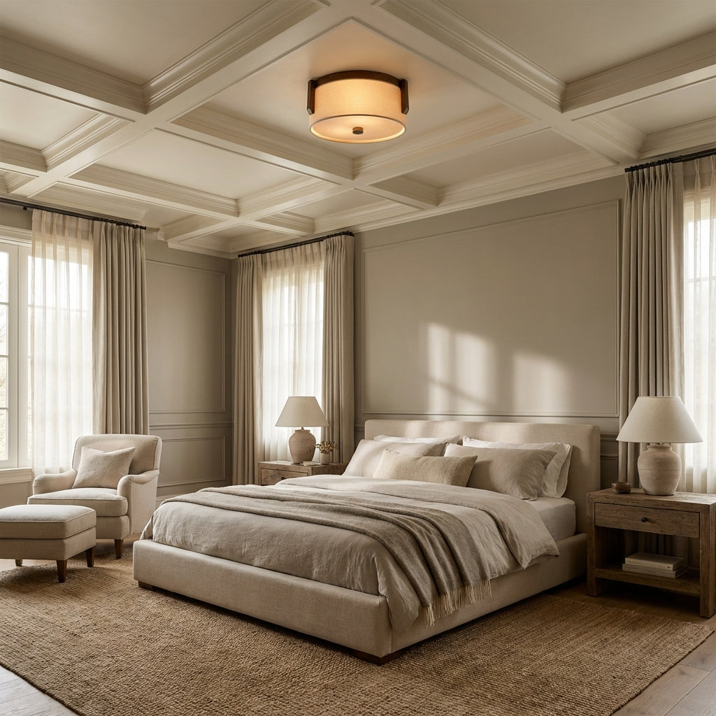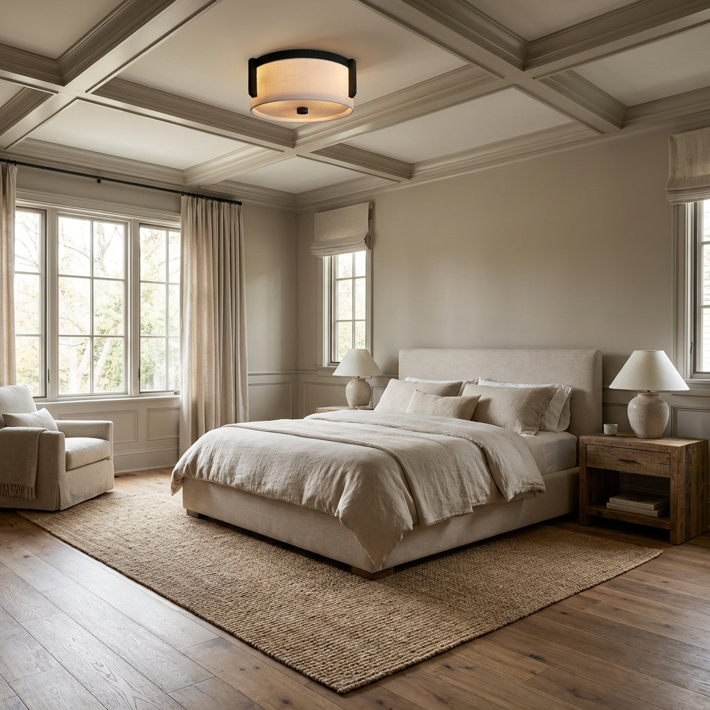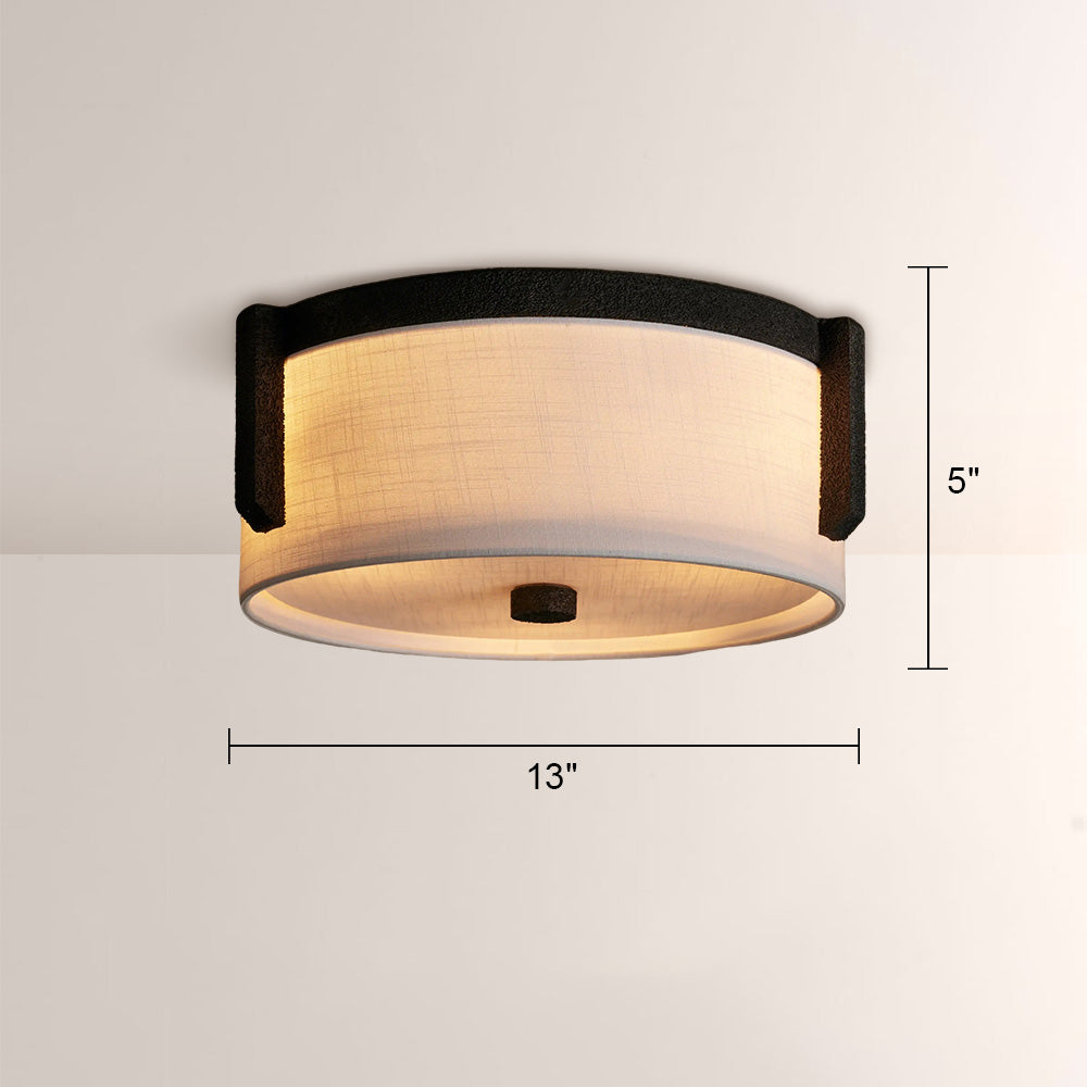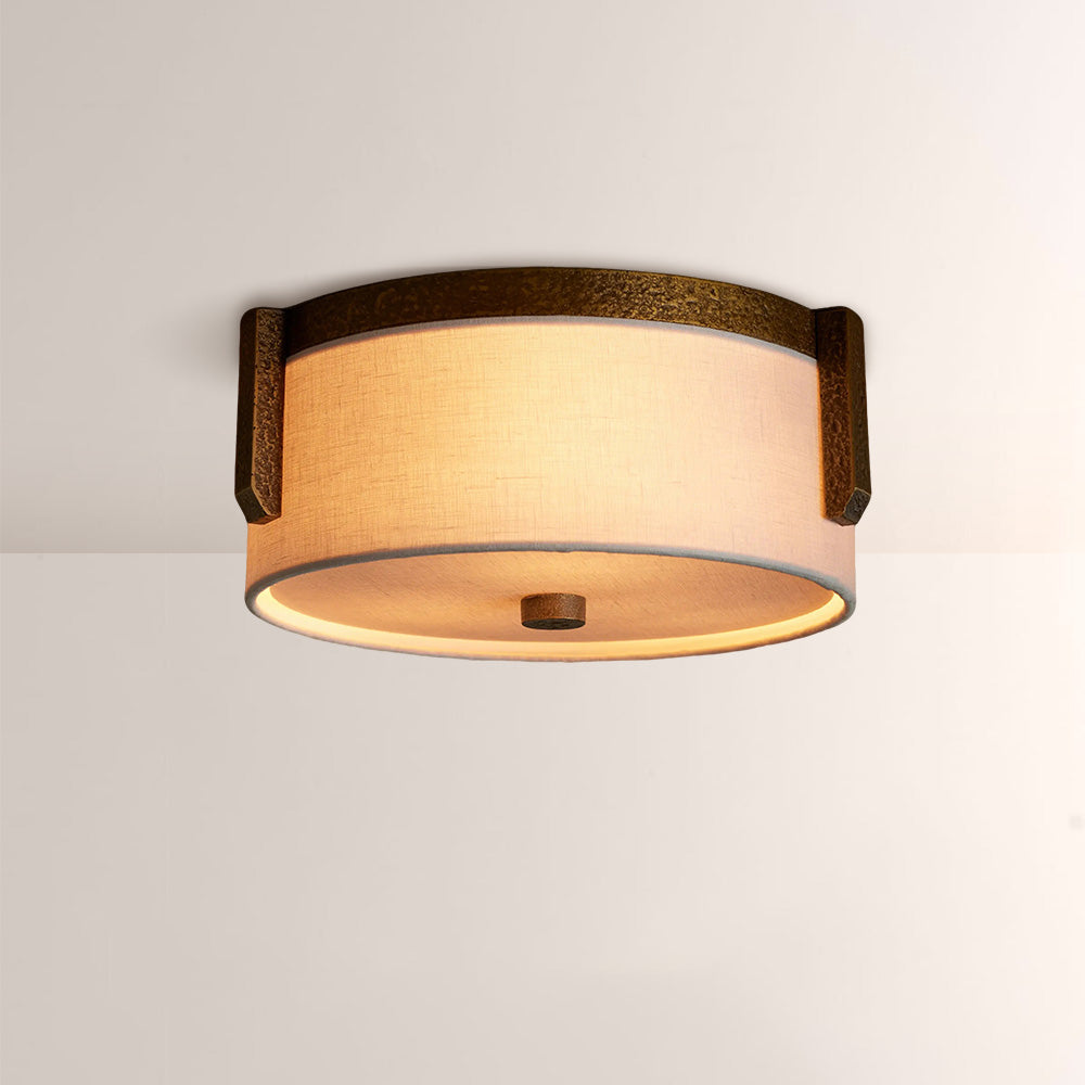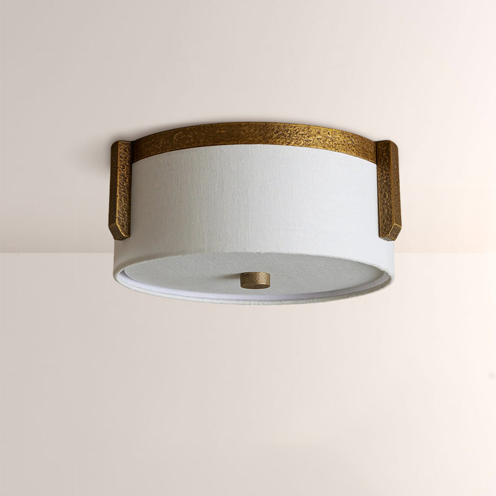 The Emmet Flush Mount blends organic texture with refined simplicity, featuring a hand-finished textured metal frame and a soft natural linen drum shade. Designed for low-ceiling spaces, it casts a warm, diffused ambient glow, infusing entryways, hallways, and bedrooms with timeless, understated luxury.