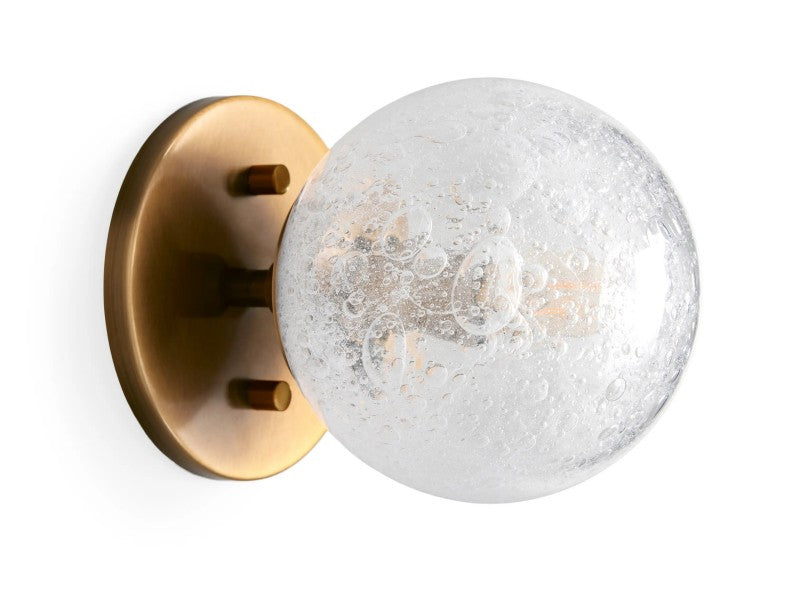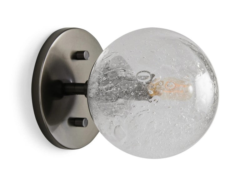 A fusion of rustic charm and industrial design, our Mandoza Collection features stunning silhouettes and mixed-material style. Each individual glass globe is hand-blown with a reactive technique, creating a dense network of bubbles under a thick layer of glass. The result has a striking effect when illuminated from within, casting light from every angle.