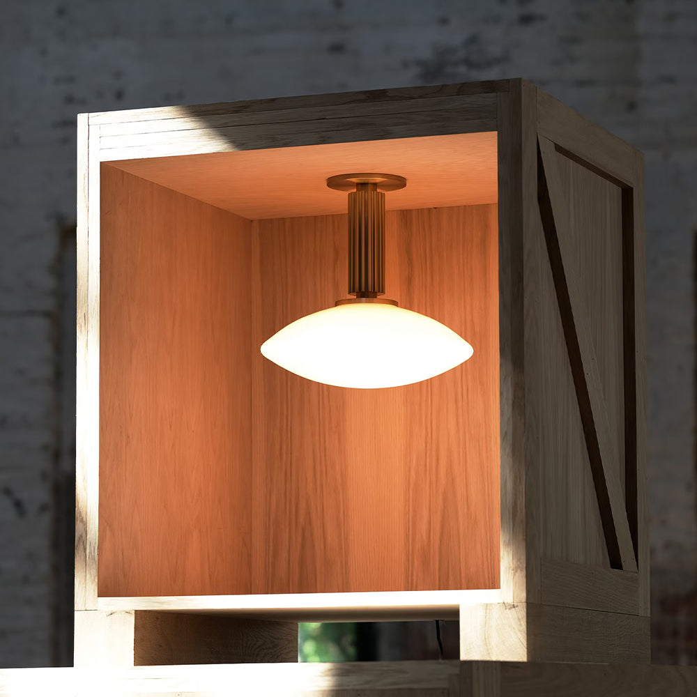 Merlyn Ribbed Brass Opal Glass Flushmount