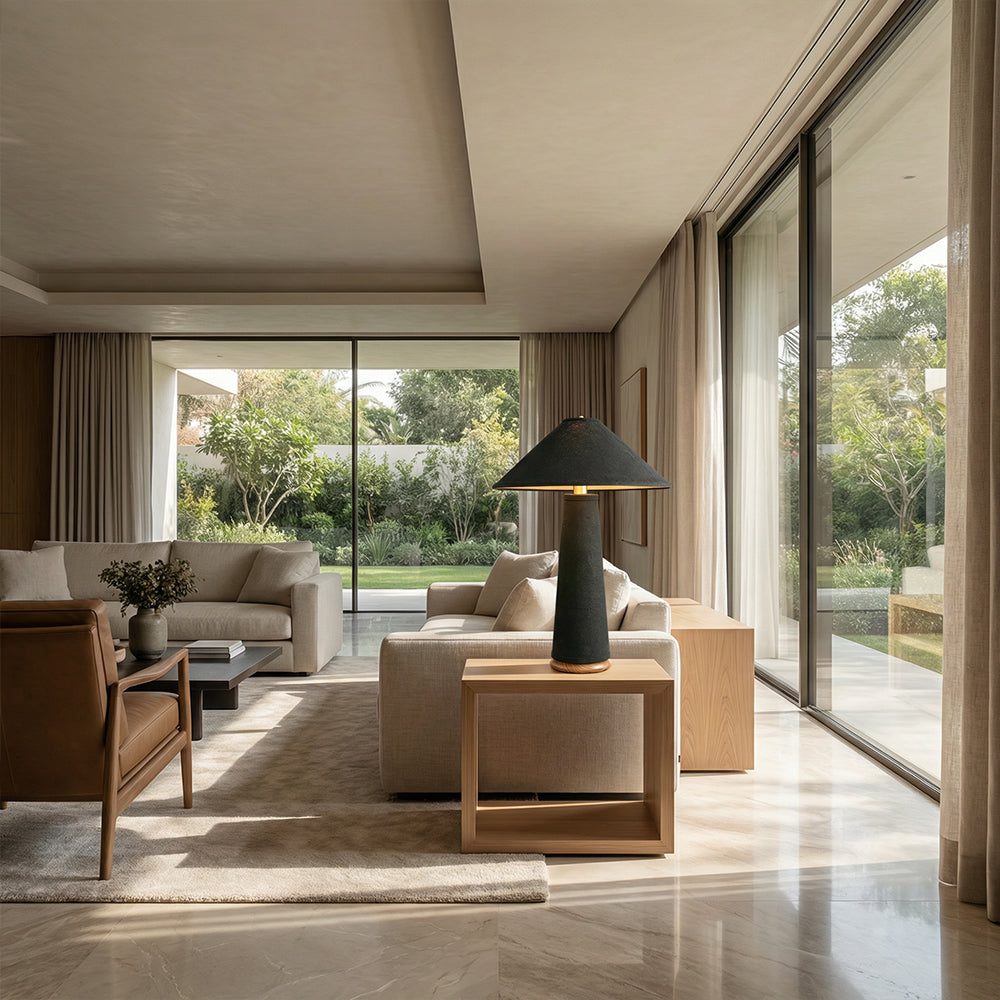 The Ombria Tapered Table Lamp is a refined extension of the Ombria collection, embodying modern organic luxury for discerning American homes. Wrapped in textured linen and anchored by a solid wood base, its tapered silhouette and wide, angled linen shade create a balanced, sculptural form.