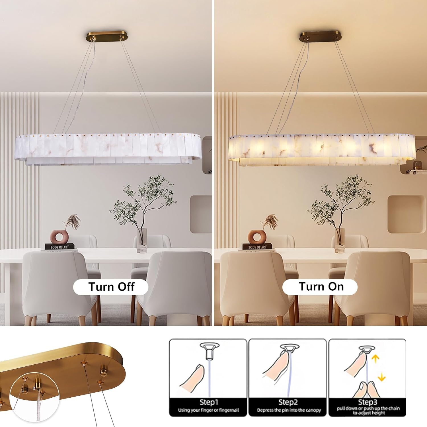 • 【Height Adjustable & Dimmable】Experience flexibility with this marble kitchen chandelier. Height adjustable with a generous 78in/200cm line length, it caters to your specific requirements. Compatible with most dimmers, enjoy smooth 10%-100% dimming, allowing you to tailor the lighting ambiance to suit any mood or occasion.