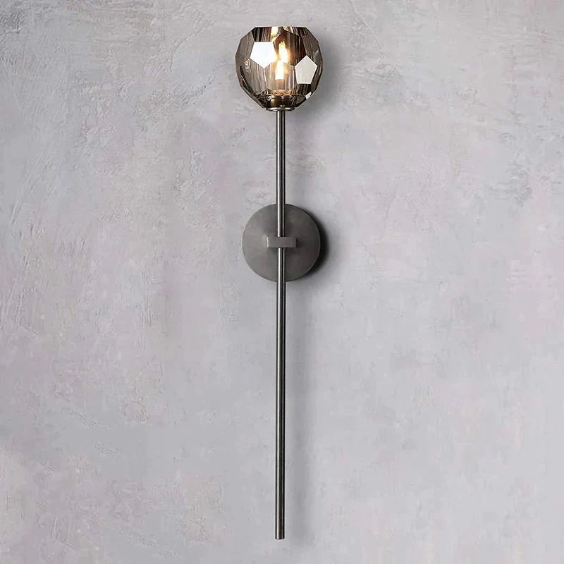 | The collection crafted of solid brass and crystal glass, for luxe materials and superior craftsmanship, each finely faceted sphere is ground and polished by hand to reflect and refract the light. |