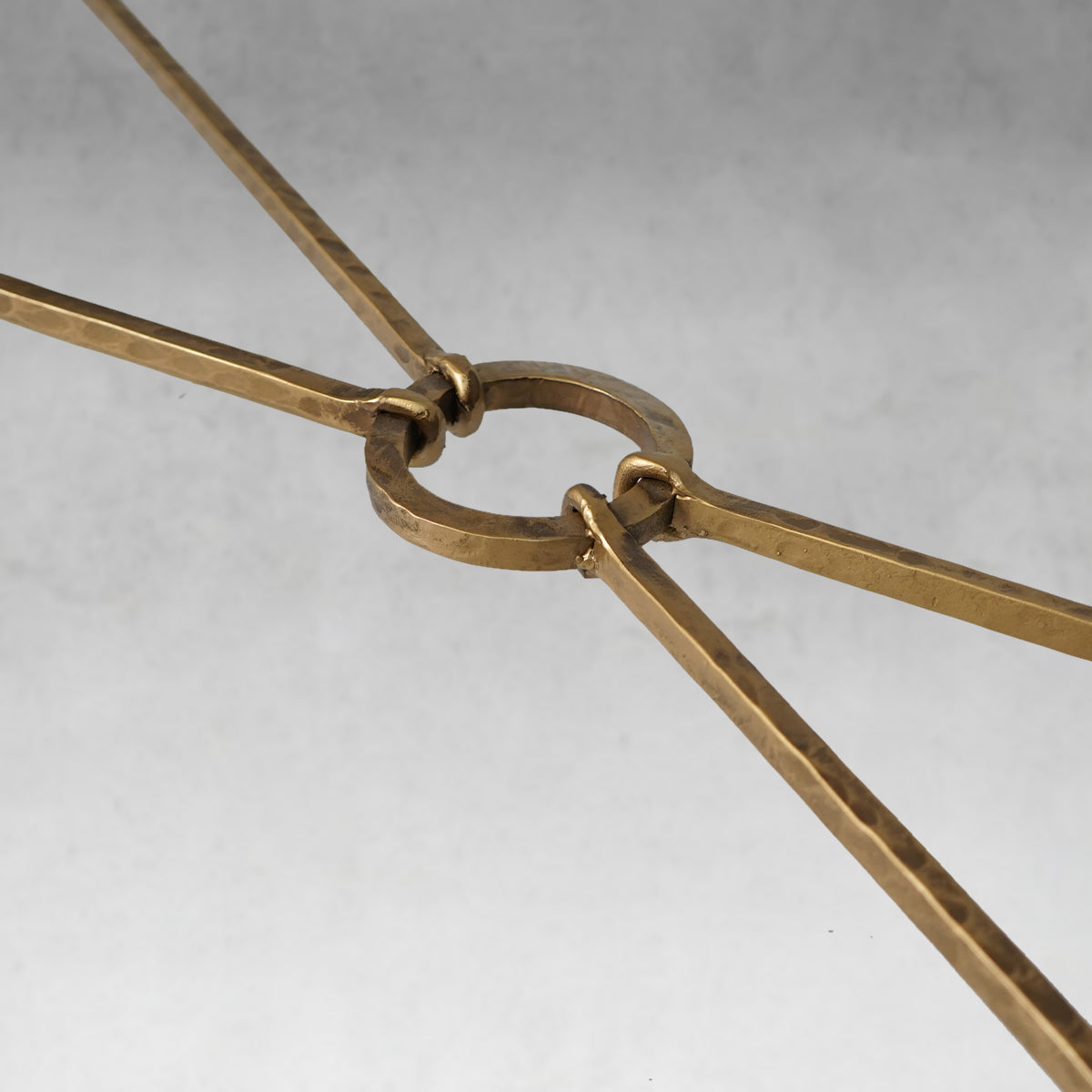 Inspired by 19th century French garden tables, neoclassical forms are reimagined with a modern sensibility. The slim frame features an X-shaped stretcher combined with a rounded center piece that showcases the beauty of hand-cast metal and adds exquisite detail.