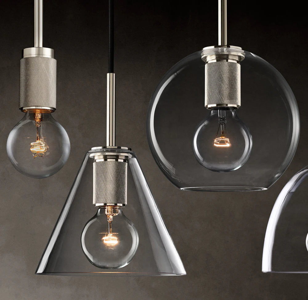 An elevated version of the bare bulb, our Utilitaire collection from Ian K. Fowler is both polished and spare, representing an industrial minimalist vision. The socket's precisely crafted diamond knurled texture, the striking filament bulb and the simple, clear glass shade offer restrained embellishment. |