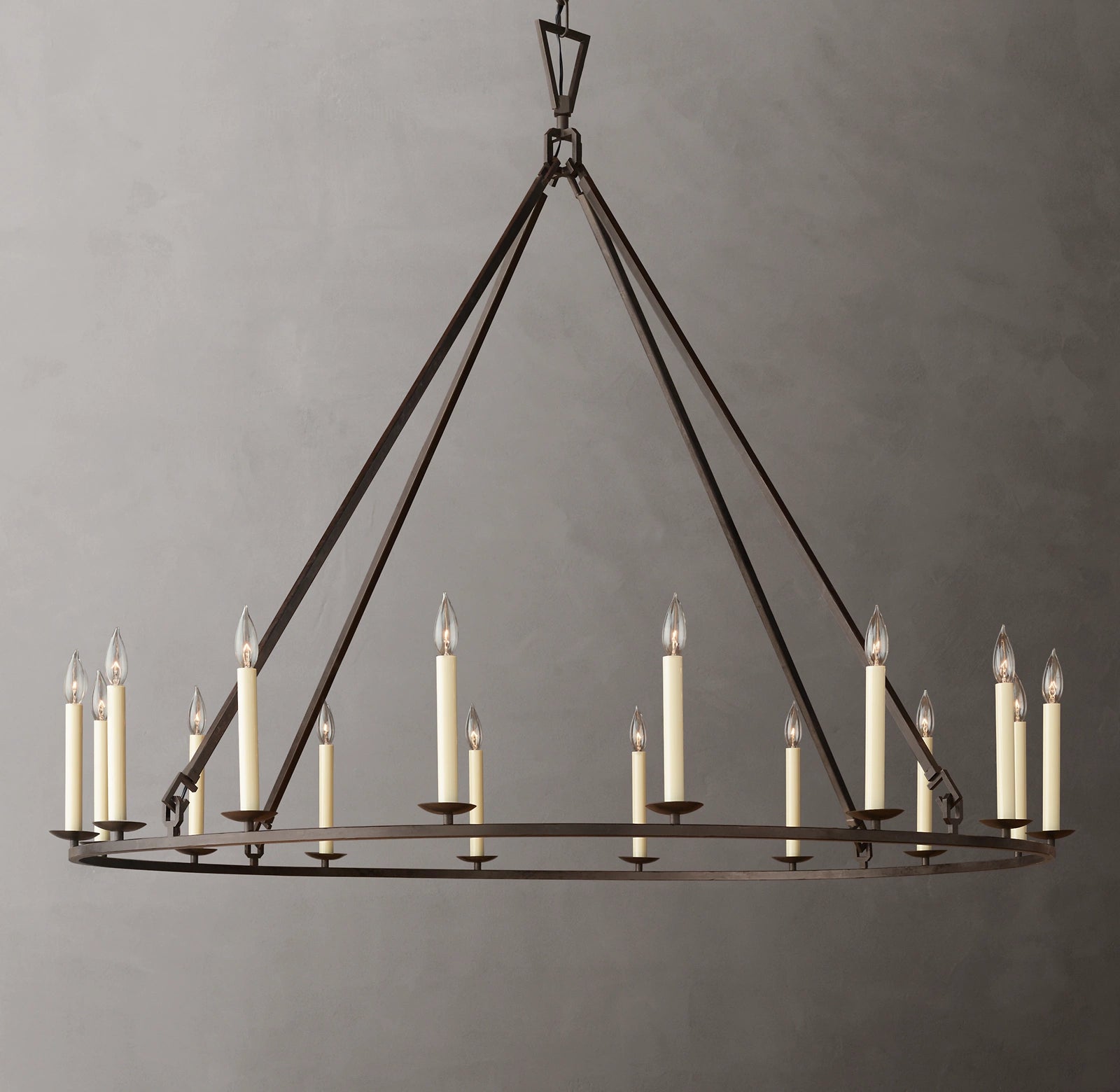 The forthright design of our lantern-style fixture reflects the functional architecture of 19th-century lighting. We've omitted the glass panes that once shielded the candle's flame to allow unobstructed illumination. |